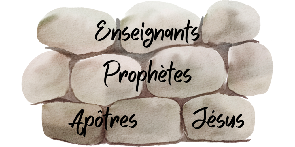 L’église est ici décrite comme une construction (spirituelle), dont Jésus est la « pierre angulaire », la pierre fondamentale, et dont nous sommes les pierres vivantes. Dans cette construction, les apôtres sont au premier rang, les prophètes au deuxième, les enseignants au troisième (1 Corinthiens 12 : 28).
